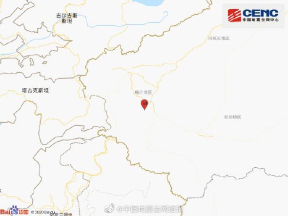 新疆喀什地区莎车县发生4.0级地震 震源深度12千米